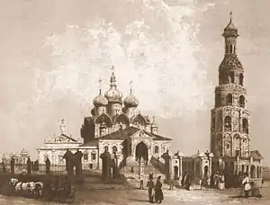 В XVIII веке колокольня имела часы с боем, а рядом с колокольней, в ограде, окружавшей собор, была надвратная церковь Похвалы Пресвятой Богородицы, разобранная при архиепископе Казанском и Симбирском (1785—1799) Амвросии Подобедове.