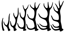 Через год у молодых самцов начинают появляться на лбу бугорки, которые позже превратятся в роскошные рога. Хотя первые рога не будут иметь разветвлений и весной будут сброшены. С каждым последующим годом количество отростков на рогах будет увеличиваться, а сами рога будут становиться мощнее и сильнее. Наибольших размеров они достигают в возрасте самцов от 5 до 12 лет, потом они становятся с каждым годом меньше, слабее, уменьшается количество отростков. Рога сбрасываются в марте-апреле, иногда, в тёплые зимы, — в январе-феврале. Окостенение пантов происходит в июле — августе.