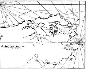 ![]() Ранняя карта бухты Блафф (Пернети Хаус, 1769) | |
