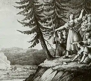 Согласно легенде, события произошли в «эпоху Эллы», короля гётов, который повёл своё племя на норвежские земли. Он взял в своё войско многих мужчин из южных и западных гётов («гётских всадников», жителей Смоланда), оставив весь Смоланд беззащитным. Воспользовавшись этим, датчане напали на незащищённые земли. В одной из сотен, Конга, жила женщина благородного происхождения Бленда, и когда она узнала о нападении, то решила собрать всех женщин из сотен Конга, Альбо, Кинневальд, Норрвидинге и Уппвидинге в единое войско, чтобы остановить незваных гостей.