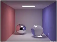 - Гладкость поверхности. Если размер неровностей поверхности много меньше длины волны, то доля зеркально отражённого света по отношению к диффузному велика. Если размер неровностей поверхности соизмерим или намного больше длины волны (шероховатая поверхность), то велика доля диффузно отражённого света.