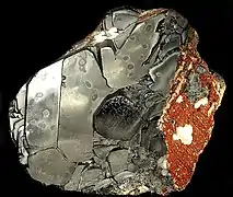 - Металлический блеск — наблюдается у самородных металлов, но некоторые минералы с относительно невысокой электропроводностью, например пирит, халькопирит, галенит также имеют металлический блеск, похожий на блеск металла, что обусловлено наличием в кристаллической решётке этих веществ относительно свободных электронов.
