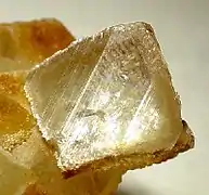 - Алмазный блеск — выглядит как яркий стеклянный блеск, характерен для минералов с высоким показателем преломления[4]. Примеры — алмаз, сфалерит, рутил, циркон.