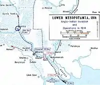 С началом войны на Ближнем Востоке 4 ноября британские войска при содействии флота высадились в Фао. Затем британские войска двинулись на север вдоль реки Шатт-эль-Араб и 21 ноября захватили Басру. После захвата этого важнейшего порта британские войска 9 декабря таким же путём захватили Эль-Кур у слияния рек Тигра и Евфрата.
