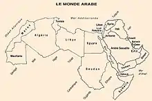 Границы Ближнего Востока чрезвычайно размыты (см. Большой Ближний Восток), так как регион расположен на пересечении Южной Европы и Северной Африки, и довольно дифференцирован от иных регионов Азии, имея самобытный строй общественности и культуру. Помимо арабских стран сюда также относят сопредельные мусульманские страны Азии (Турция[3], Иран). Реже — ряд негроидных стран Восточной Африки (Судан, Сомали, Джибути). Внутри Ближнего Востока выделяют африканскую и азиатскую часть.