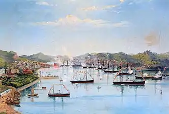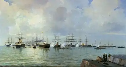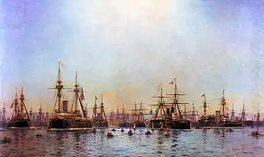 Вид бухты Золотой Рог во время пребывания во Владивостоке Управляющего Морским министерством адмирала Шестакова