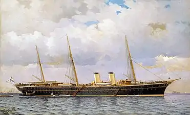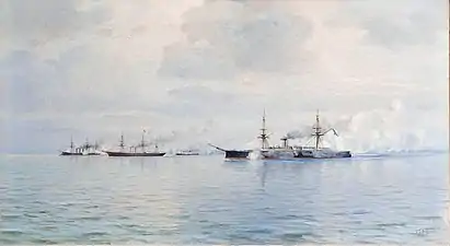 Императорская яхта «Держава» в сопровождении боевых кораблей