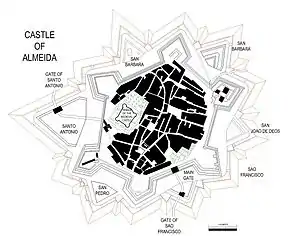 После отступления маршала Андре Массены из Португалии французы поставили в крепости гарнизон в 1400 человек под началом Брёнье. Эти войска и были заблокированы в городе силами Артура Уэлсли, 1-го герцога Веллингтона. Поскольку англо-португальская армия не имела тяжёлых орудий, чтобы пробить стены, они были вынуждены взять гарнизон измором, так что технически это была блокада, а не осада.