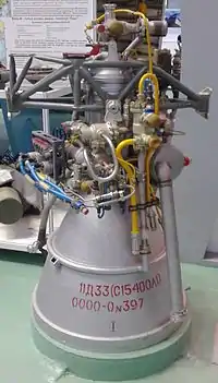 Блок баков разработан на основе тороидальных баков более раннего блока «Е», использованного в ракетах 8К72 и 8К72К, но, впервые в СССР, двигатель 11Д33 (С1.5400), был сконструирован по схеме с дожиганием генераторного газа, что позволило увеличить его удельный импульс.