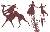 Кроме них найдено более 60 бусин, изготовленных из раковин Nassarius kraussianus. Из них 27, вероятно, составляли ранее одно ожерелье. Аналогичные бусы несколько большего возраста находили на Ближнем Востоке и на севере Африки, на стоянках атерийской культуры[7]. В пещере Бломбос найдено также более 15 изделий из кости периода M1 и два камня с геометрическими (решётчатыми) рисунками охрой. Рисунки на одном из камней, похожие на хештег, датированы возрастом в 73 тыс. л. н., что делает их старейшими известными на сегодняшний день примерами нефигуративного искусства[8].