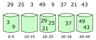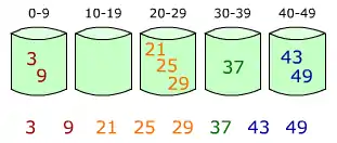 Массив buckets представляет собой массив массивов (массив списков, массив коллекций и т.п.), подходящих по природе к элементам A.