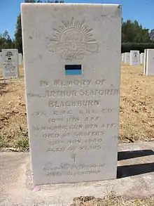 Артур Сифорт Блэкбёрн скончался 24 ноября 1960 года[72] в пригороде Аделаиды Крэферсе от разрыва аневризмы общей подвздошной артерии[73], не дожив одного дня до 68-го дня рождения[2]. Он оставил после себя жену Роуз (1894—1981) и четверых детей: дочерей Маргарет Элисон (в замужестве Форбс[74], ?—?) и Розмари Невилл (в замужестве Уингтон[75], 1925—1994)[76] и сыновей Ричарда Артура (1918—1987)[77] и Роберта Стюарта (1921—1994)[76]. Оба сына сделали военную карьеру и тоже служили во Вторых АИС[4].