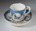 Чашка в стиле рококо с блюдцем, около 1753 года, мягкий фарфор с глазурью и эмалью, Музей искусств округа Лос-Анджелес