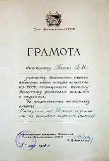 - Медаль «Ветеран труда» — в 1985 г.