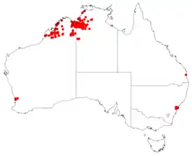 Ареал вида — северо-запад штата Западная Австралия и часть Северной территории.