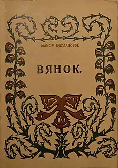В Вильне, в начале 1914 года в типографии Мартина Кухты при денежной поддержке Марии Магдалены Радзивилл тиражом 2000 экземпляров[14] издан единственный прижизненный сборник произведений Максима Богдановича «Венок» (на титуле обозначен 1913 год). Посвящение — «Венок на могилу С. А. Полуяна (умер 8 апреля 1910)» — сделал Вацлав Ластовский без разрешения автора, но после Богданович одобрил его инициативу. Сборник содержал 92 стихотворения и 2 поэмки, расположенные на 120 страницах, разделён на циклы: «Рисунки и песнопения», «Думы» и «Мадонны». В письмах к издателю были предложения включить в «Мадонны» «Любовь и смерть» (13 стихотворений) и до 5 переводов из «Старого наследия», добавить 22 перевода из Поля Верлена и образовать раздел «С чужой почвы». Однако книга вышла без дополнений и без послесловия «Опять увидел я хутора» к поэме «Вероника»[14]. В полном собрании стихотворений Максима Богдановича 1992—1995 годов издатели вставили всё вышеперечисленное.[14]
