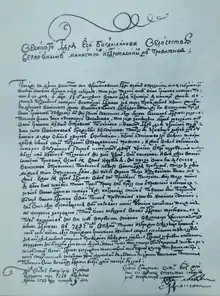 - Грамата, данная из Якутска, для вручения ея, через Хабарова, Князю Богдою, после перваго возвращения Хабарова с Амура, в 1650 г.