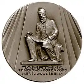В 1959 году В. Я. Боголюбов в соавторстве с В. В. Исаевой создал памятник А. С. Попову (архитектор Н. В. Баранов; отдельные источники указывают на участие в создании монумента скульптора М. К. Аникушина[5]). Установлен на Каменноостровском проспекте, в сквере между домами 39 и 41.