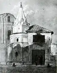 Несмотря на протесты Московского археологического общества, в 1905 году была снесена надвратная церковь Рождества Иоанна Предтечи. На её месте построили доходный дом, а в храме устроили одноимённый придел[2].