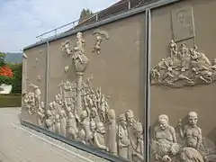 - Рельеф работы известного скульптора Петера Ленка "Наследие Людвига", высмеивающий нравы немецких политиков