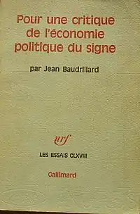 - К критике политической экономии знака = Pour une critique de l’économie politique du signe : [ориг. изд. 1972] / пер. с фр. Д. Кралечкина (2003). — М. : Академический проект, 2007. — ISBN 978-5-8291-0898-4.
