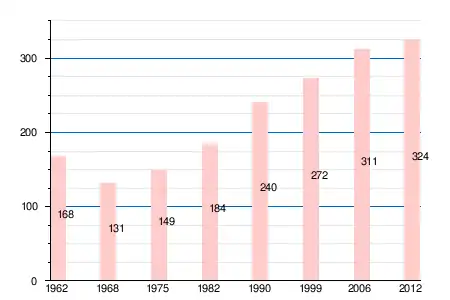 | 168 | 131 | 149 | 184 | 240 | 272 | 294 | 311 | 324 | 327 | 324 |