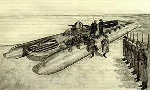 Идея наземного аппарата, использующего для движения принцип воздушной подушки, впервые была предложена К. Э. Циолковским в 1927 году[1][5]. Уже в 1937 году коллектив Московского авиационного завода № 84 под руководством пионера в разработке судов на воздушной подушке (СВП), выдающегося советского инженера и конструктора В. И. Левкова (ещё в 1925 году обосновавшего возможность создания СВП и в середине 1930-х создавшего первые в мире образцы таких судов[6]) разработал первый в мире проект танка на воздушной подушке (по документам — «Земноводного подлетающего танка»), лёгкого по массе. В конце года был построен макет машины в масштабе 1:4, однако по неизвестным причинам проект, несмотря на положительные отзывы о нём ряда представителей военного руководства, дальнейшего развития не получил и опытный образец танка так никогда и не был построен[2][3]. В это же время Левковым был разработан эскизный проект десантного амфибийного судна на воздушной подушке для нужд сухопутных войск (по сравнению с проектом танка более схожего с уже существовавшими катерами, но сохранявшего способность двигаться по суше), имевшего пулемётное вооружение во вращающейся башне и способного перевозить до 20 человек десанта, которые могли вести огонь из личного оружия, не покидая машину; по заложенным в неё идеям данная машина близка к появившимся значительно позднее боевым машинам пехоты[2][3].