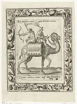 Ростом верблюд превосходит самую крупную лошадь, и это затрудняет как посадку на него, так и использование оружия. В битве с римлянами во II веке до н. э. сирийский царь Антиох III Великий использовал арабов на верблюдах, вооружённых особыми мечами длиной в 1,8 метра[2]: