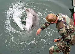 ВМС США с 1960 года осуществляет программу по работе с дельфинами и морскими львами для усиления обороны. ВМС США обучали дельфинов и морских львов в ходе программы U.S. Navy Marine Mammal Program, которая базировалась в Сан-Диего, штат Калифорния. Военных дельфинов использовали ВМС США во время Первой и Второй войны в Персидском заливе[1]. Около 75 дельфинов участвовали в этой операции[2].