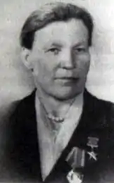 В течение нескольких лет получала наивысшие в районе урожаи пшеницы — свыше 30, 25 центнеров с гектара на площади 8 гектаров[1]. Указом Президиума Верховного Совета СССР от 16 февраля 1948 года «за получение высоких урожаев пшеницы, ржи, кукурузы и сахарной свеклы, при выполнении колхозом обязательных поставок и натуроплаты за работу МТС в 1947 году и обеспеченности семенами зерновых культур для весеннего сева 1948 года» удостоена звания Героя Социалистического Труда с вручением ордена Ленина и золотой медали «Серп и Молот».