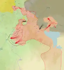 Битва за Алеппо (араб. معركة حلب) — вооружённое противостояние за контроль над городом Алеппо и его окрестностями, развернувшееся в 2012—2016 годах в ходе гражданской войны в Сирии. Первоначально проходило преимущественно между повстанцами умеренных оппозиционных группировок и правительственными войсками, а также курдскими боевиками из Отрядов народной самообороны. Постепенно среди антиправительственных сил всё большую роль стали играть радикальные исламистские группировки, в том числе Фронт ан-Нусра и «Исламское государство», а в войну на стороне правительства вступили многочисленные союзные вооружённые группировки (в основном шиитские боевики из Ливана, Ирака и Афганистана)[22], а также военные советники из Ирана. После начала в сентябре 2015 года своей военной операции в Сирии, к событиям в Алеппо присоединилась Россия, начавшая наносить авиационные и ракетные удары по повстанческим и террористическим группировкам.