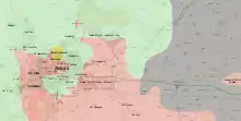 ![]() Контролируются правительственными силами Контролируются «умеренной оппозицией» и прочими Контролируются курдскими силами Контролируются «Исламским государством» | |||