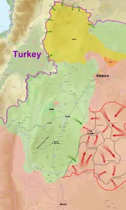 Севернее Идлиба, между провинцией и сирийско-турецкой границей, расположен район Африн, подконтрольный курдским «Отрядам народной самообороны» (YPG), которые Анкара считает ответвлением от запрещённой в Турции Рабочей партии Курдистана (РПК).