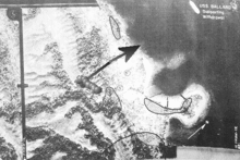 В то же самое время передвигались на позицию, которая полностью отрезала морских пехотинцев на Высоте 84 от берега. Поэтому Монссен, координируемый Пуллером, начал обстреливать путь между хребтом и берегом. Через около 30 минут огня эсминца путь к отступлению морских пехотинцев к берегу был расчищен. Несмотря на некоторые потери от собственного артиллерийского огня, большая часть морских пехотинцев достигла берега у мыса Крус к 16:30. Солдаты Оки открыли плотный огонь по морским пехотинцам на берегу, пытаясь помешать их успешной эвакуации, и экипажи Береговой охраны США, управлявшие десантными катерами, ответили собственным плотным огнём, прикрывая отступление морской пехоты. Под огнём морские пехотинцы погрузились на десантные катера и успешно вернулись к периметру Лунга, на чём операция была завершена. Связист первого класса Береговой охраны Дуглас Альберт Монро, который командовал группой катеров Хиггинса, и погиб, прикрывая огнём своего десантного катера морских пехотинцев во время эвакуации, посмертно был награждён Медалью почёта за свои действия во время боя; на сегодняшний день это единственный военнослужащий Береговой охраны, получивший эту награду.[28]