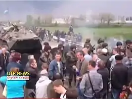 - Первые жертвы в Славянске: что дальше?. Видеорепортаж. Русская служба Би-би-си (21 апреля 2014). Дата обращения: 24 апреля 2014.