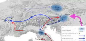 Часть бойев под давлением соседей отошла в 80-60-е годы до н. э. на запад, а часть поселилась на территории Словакии, до Муры и на венгерской равнине[46].
