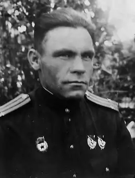 Указом Президиума Верховного Совета СССР «О присвоении звания Героя Советского Союза генералам, офицерскому, сержантскому и рядовому составу Красной Армии» от 10 января 1944 года за «образцовое выполнение боевых заданий командования на фронте борьбы с немецко-фашистскими захватчиками и проявленные при этом отвагу и геройство» удостоен звания Героя Советского Союза с вручением ордена Ленина и медали «Золотая Звезда» (№ 2072)[6].