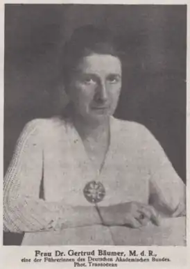 Гертруда Боймер (нем. Gertrud Bäumer; 12 сентября 1873 — 25 марта 1954, под Билефельдом) — немецкий общественно-политический деятель, правозащитник, суфражистка, писательница, педагог.