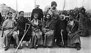 ![]() Ю. И. Репин «Тюренчен. В славной смерти вечная жизнь.» (11-й Восточно-Сибирский стрелковый полк в Тюренченском бою). | |||
