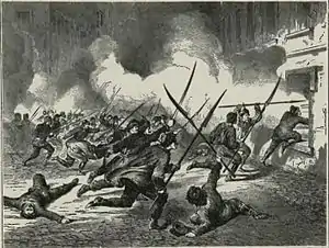 Поняв в чём дело, гарнизон регулярных войск из 120 человек начал неорганизованное сопротивление, завязав перестрелку с мятежниками. Однако повстанцы уже полностью владели ситуацией и некоторые из русских солдат погибли в огне и едком дыме, не успев даже выбраться из казарм. Другие же в панике выпрыгивали из окон второго этажа, ломая ноги и попадая под косы и пули мятежников. Небольшое число русских солдат открыло оружейный огонь по мятежникам, однако вскоре и их сопротивление было подавлено. Повстанцам пришлось отказаться от занятия всего местечка, так как Езераньский получил сведения о том, что по направлению к нему движется отряд регулярных войск общим числом до 1 000 человек, с несколькими орудиями, и был вынужден отдать приказ об отступлении.[1]