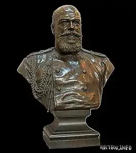 - Памятники — «фельдмаршалу князю И. Ф. Паскевичу-Эриванскому» в Варшаве (1869), «композитору М. И. Глинке» в Смоленске (1885), «бюст императрицы Екатерине II» в Моршанске (экспонировался на IV выставке Общества выставок художественных произведений, а позднее ошибочно приписывался Самуилу Гальбергу; вновь изготовленная копия установлена в Моршанске в 2018 году[7])[5].