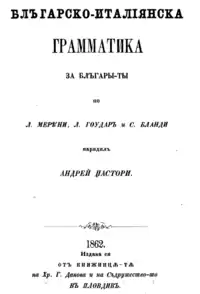 В 1862 году учитель латыни Андрей Пастори издал в Пловдиве первый болгарский учебник итальянского языка.[5]