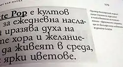 Фрагмент страницы книги «Живая типографика» Александры Корольковой с примером набора «болгарицей» из болгарского журнала.