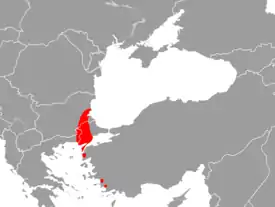 Вид встречается в Болгарии и Турции[1][2]. B ископаемом состоянии вид известен из отложений плейстоцена и постплейстоцена от Израиля до Южной Анатолии, островоа Эгейского моря и континентальной Греции[4].