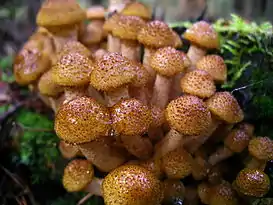 Возбудитель — гриб Armillaria mellea (Vahl) Quel. (опёнок настоящий).