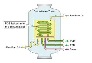 - Contamination of rice bran oil with PCB used as the heating medium by leakage through penetration holes at the heating coil tube in deodorization chamber. Hatamura Institute for the Advancement of Technology. Дата обращения: 11 декабря 2007.