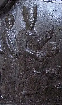 ![]() Болеслав I Храбрый. Миниатюра из «Польской хроники» Мацея Меховского (1519 год) | |