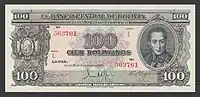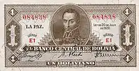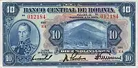 | Аверс 1 и 10 боливиано, 1928 | Аверс 100 боливиано 1945 и 100 песо 1962 | ||