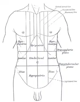Выделяют две главные причины боли в животе - вздутие органов брюшной полости (висцеральная боль), и раздражимость брюшины (соматическая боль). Вздутие любого полого органа (например желчных проток, толстого и тонкого кишечника, мочевого пузыря, мочеточников, гинекологических органов - матка, фаллопиевы трубы) приводит к спастической (спазматический) и интермиттирующей (прерывистой) боли живота. Висцеральная боль плохо локализуется и обычно отмечается больным на средней линии живота. Вздутие верхней части пищеварительного тракта обычно локализуется в эпигастральной области. Кровоснабжение верхней части пищеварительного тракта осуществляется через чревный артериальный ствол. Она включает желудок, двенадцатиперстная кишка, жёлчные протоки. Вздутие средней части пищеварительного тракта обычно локализуется в околопупочной области. Кровоснабжение средней части пищеварительного тракта (от двенадцатиперстной кишки до поперечная ободочная кишки) осуществляется через верхнюю брыжеечную артерию. Вздутие нижней части кишечника локализуестя в надлобковой области. Кровоснабжение нижней части кишечника (от поперечной ободочной кишки до прямой кишки) осуществляется через нижнюю брыжеечную артерию. В отличие от висцеральной боли соматическая боль хорошо локализуется. Раздражение пристеночной брюшины в результате движения или растяжения приводит к острой боли.[1]