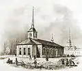 Начало XVIII века. Первая Исаакиевская церковь. Литография с рисунка О. Монферрана. 1710 год